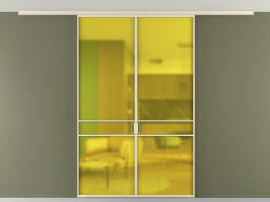 АЛПР 040.02. Алюминий бежево-серый Сатинированное жёлтое стекло, триплекс, 6мм
