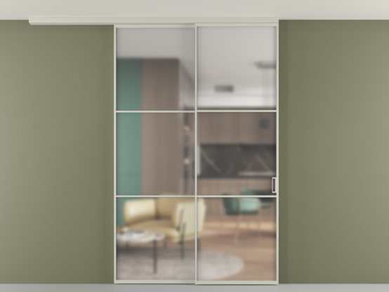 Во всех алюминиевых перегородках, независимо от типа установки, используется компланарный раздвижной механизм, благодаря которому декоративная крышка и полотно находятся в одной плоскости.