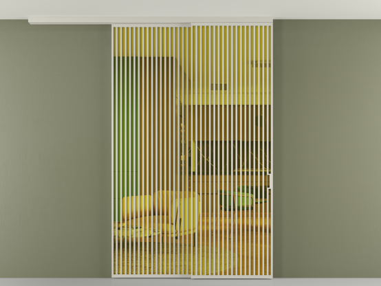 Во всех алюминиевых перегородках, независимо от типа установки, используется компланарный раздвижной механизм, благодаря которому декоративная крышка и полотно находятся в одной плоскости.