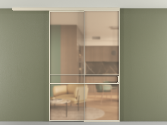 Во всех алюминиевых перегородках, независимо от типа установки, используется компланарный раздвижной механизм, благодаря которому декоративная крышка и полотно находятся в одной плоскости.