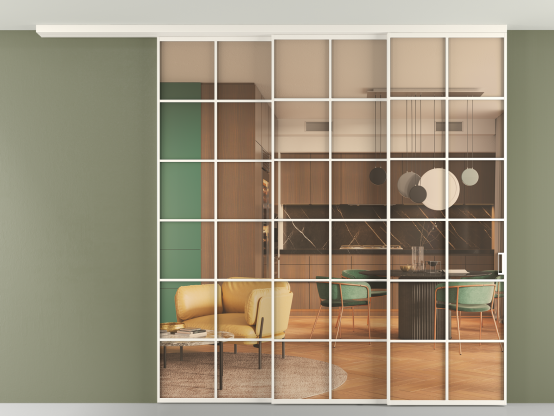 Алюминиевые перегородки Formato — это стильное и функциональное решение для современных интерьеров, предназначенное для разделения и зонирования пространства внутри одного помещения. Перегородки изготавливаются под индивидуальные размеры с шагом в 1 мм, что даёт возможность подобрать оптимальное соотношение размеров и количества створок, в том числе и для нестандартных проёмов.