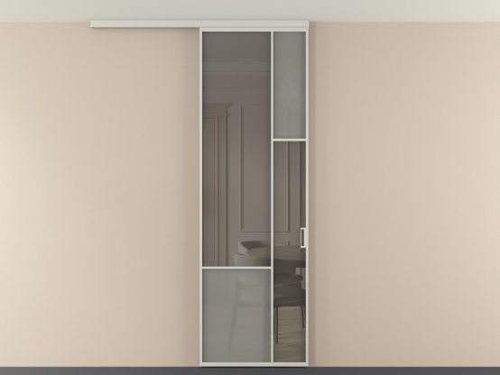 Во всех алюминиевых перегородках, независимо от типа установки, используется компланарный раздвижной механизм, благодаря которому декоративная крышка и полотно находятся в одной плоскости.