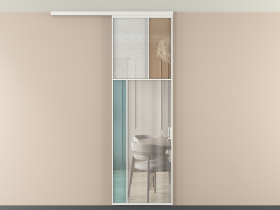 Во всех алюминиевых перегородках, независимо от типа установки, используется компланарный раздвижной механизм, благодаря которому декоративная крышка и полотно находятся в одной плоскости.