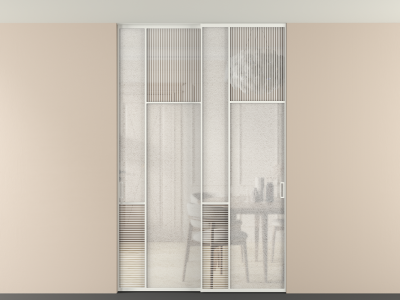 Во всех алюминиевых перегородках, независимо от типа установки, используется компланарный раздвижной механизм, благодаря которому декоративная крышка и полотно находятся в одной плоскости.