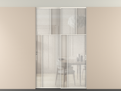 Дополнительно на раздвижную двустворчатую перегородку вдоль стены и четырехстворчатую перегородку внутри проема с двумя неподвижным полотнами можно установить механизм синхронного открывания — при открывании одной створки, вторая открывается автоматически.