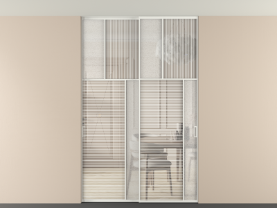 Дополнительно на раздвижную двустворчатую перегородку вдоль стены и четырехстворчатую перегородку внутри проема с двумя неподвижным полотнами можно установить механизм синхронного открывания — при открывании одной створки, вторая открывается автоматически.