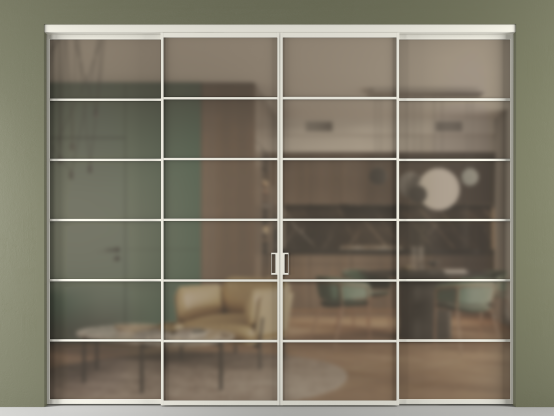 Во всех алюминиевых перегородках, независимо от типа установки, используется компланарный раздвижной механизм, благодаря которому декоративная крышка и полотно находятся в одной плоскости.