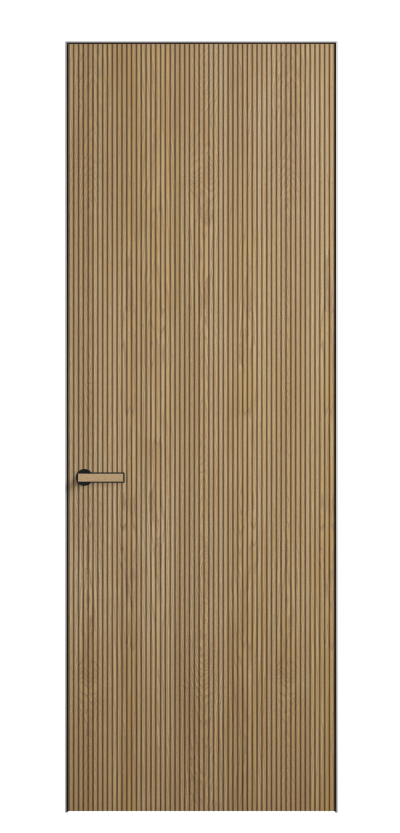 Это полотна с рельефной фрезеровкой. Этот прием делает интерьер объемным, тактильным, вносит интересную текстуру и создает современный образ. Волнистый рельеф может быть выполнен по ламелям из массива дуба в древесных матовых отделках, либо исполнен по натуральному и экологически безопасному материалу — ХДФ, покрытому гладкой эмалью актуальных оттенков.
