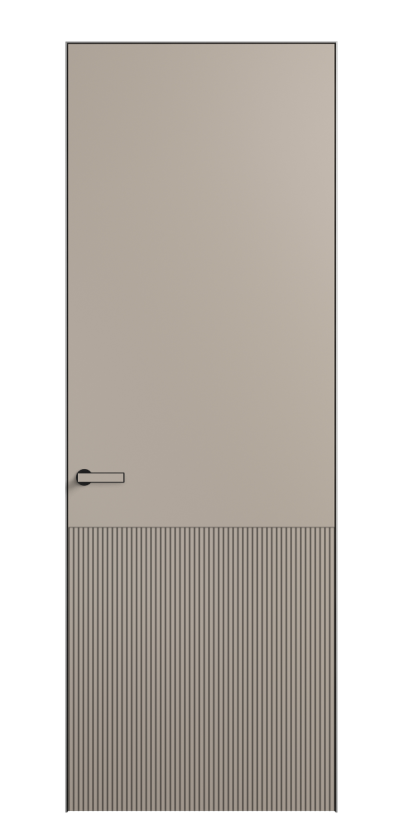 Это полотна с рельефной фрезеровкой. Этот прием делает интерьер объемным, тактильным, вносит интересную текстуру и создает современный образ. Волнистый рельеф может быть выполнен по ламелям из массива дуба в древесных матовых отделках, либо исполнен по натуральному и экологически безопасному материалу — ХДФ, покрытому гладкой эмалью актуальных оттенков.